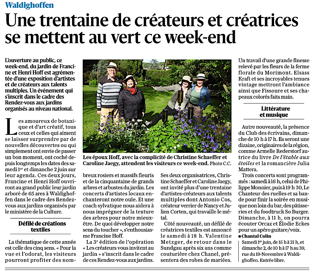 Présentation, ci-dessous, des Expositions annuelles (de 2022 à 2025) de Créateurs d’art locaux, animations et visites du jardin de Henri et Francine HOFF à Waldighoffen (68640), en lien avec les “RV aux Jardins du Ministère de la Culture” (depuis 2023)